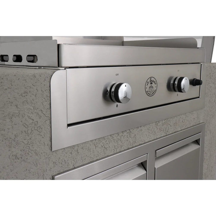 This trim kit has a sleek, brushed stainless steel finish, giving your outdoor kitchen a professional and modern aesthetic. Its clean lines integrate seamlessly with your griddle for a sophisticated look.